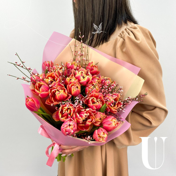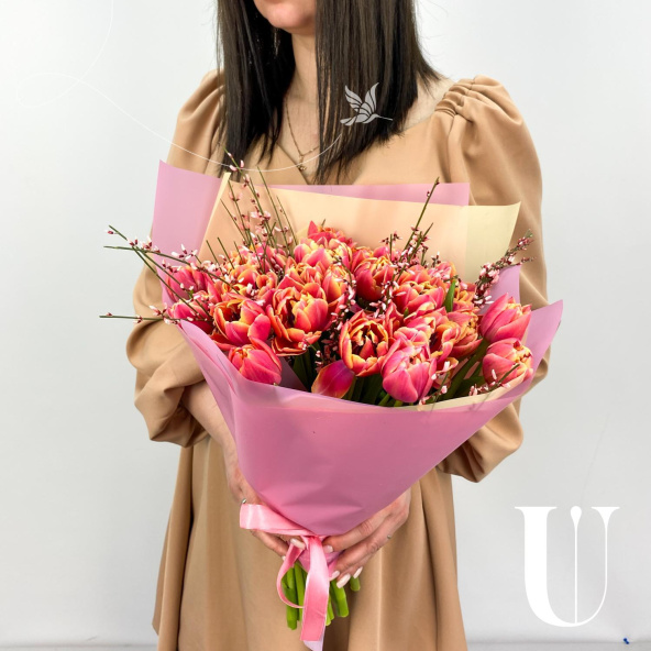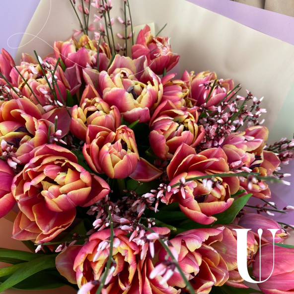 Монобукет из 49 тюльпанов микс в крафтовой упаковке