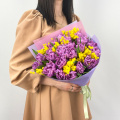 Букет из микса хризантем Сантини в упаковке
