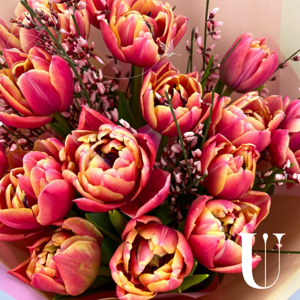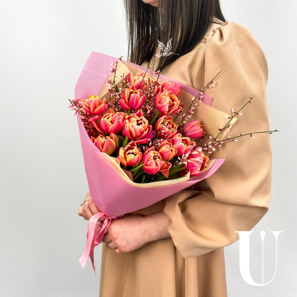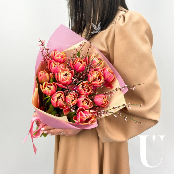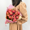 Монобукет из 19 роз сорта Гран При 70 см в крафтовой упаковке