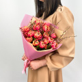Монобукет из красных кустовых роз сорта Мирабель 60 см в упаковке