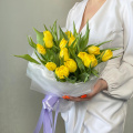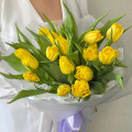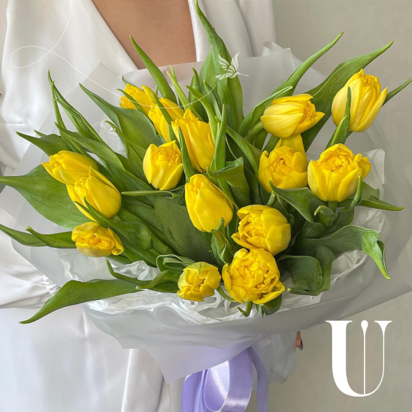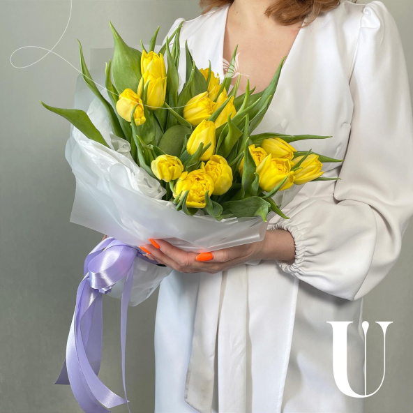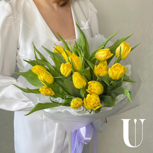 Прекрасный букет из тюльпанов подарит получателю солнечное настроение.