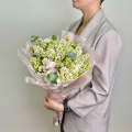 Монобукет из кустовых пионовидных роз Бомбастик в упаковке