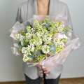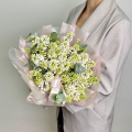 Огромный букет из кустовых хризантем в дизайнерской упаковке