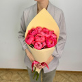 Монобукет из розовых кустовых роз в крафтовой упаковке