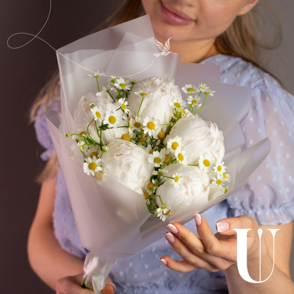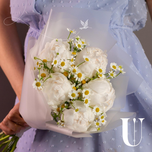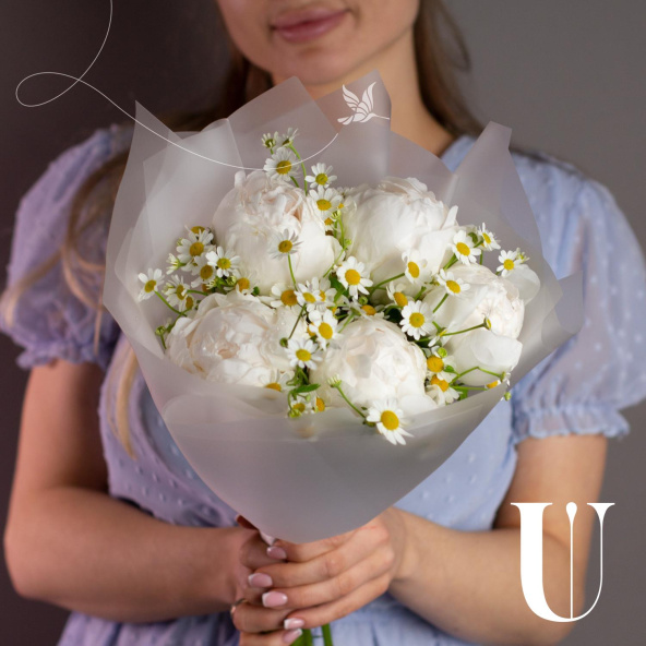 Монобукет из ромашки сорта Камилла наполненный теплом и чистотой