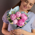 Букет из роз сорта Кахала и пионовидной розы Мисс Бомбастик