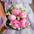 Монобукет из малиновых кустовых пионовидных роз в черной упаковке
