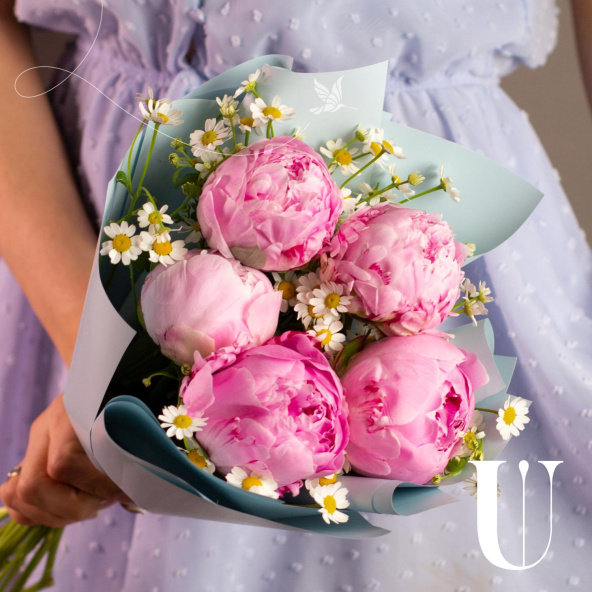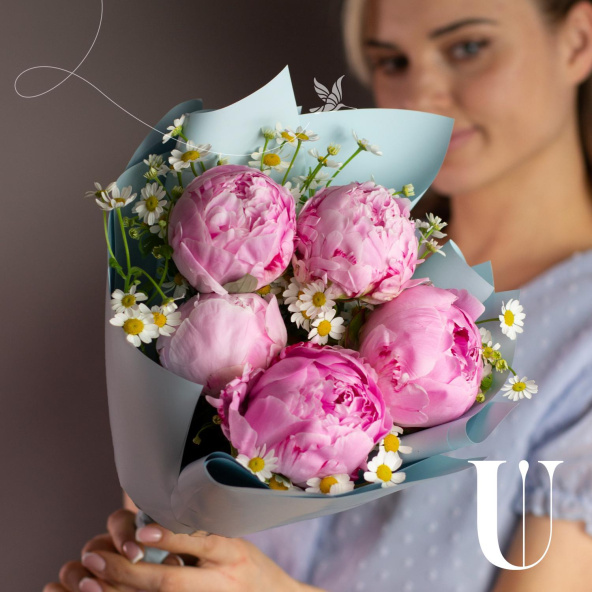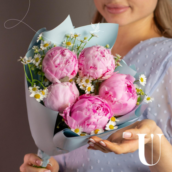Монобукет из 9 хризантем сорта Бигуди в дизайнерской упаковке