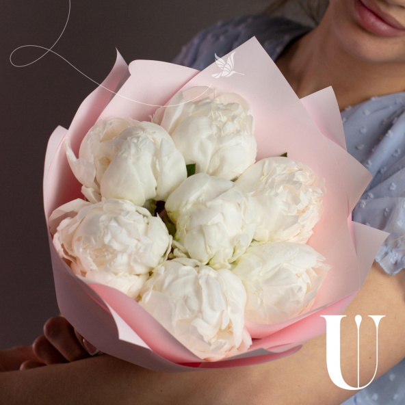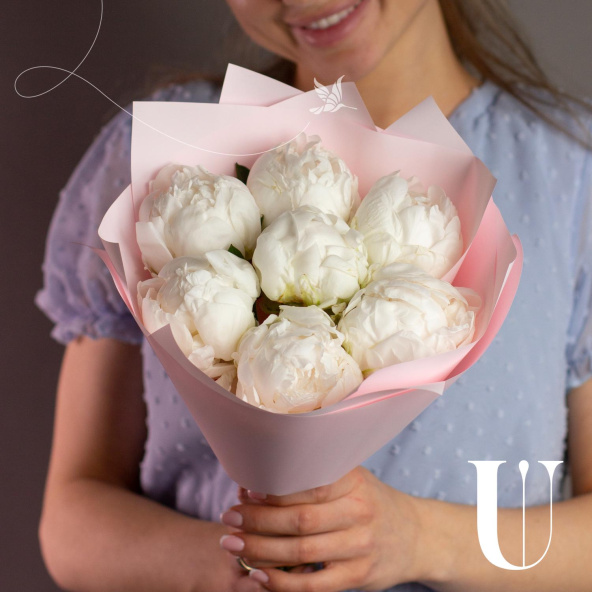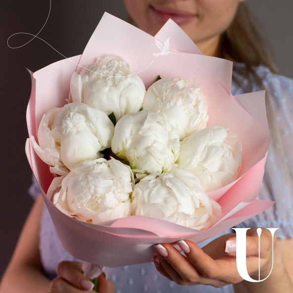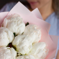 Монобукет из 9 розовых пионов сорта Сара Бернар