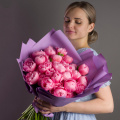 Монобукет из кустовых пионовидных роз Джульетта в упаковке