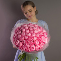 Монобукет из 49 ранункулюсов в прозрачной пленке