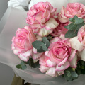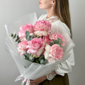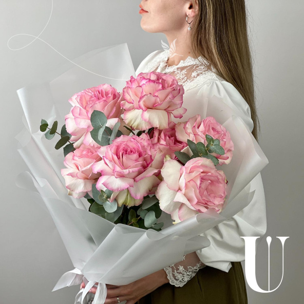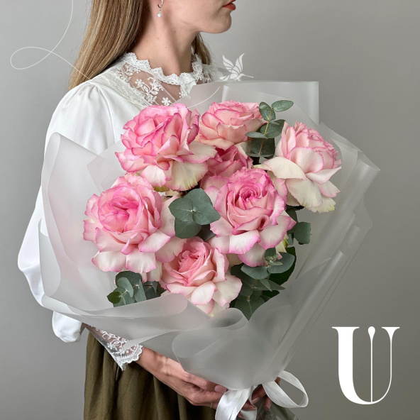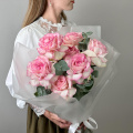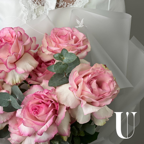 Монобукет из 17 роз Пинк Мондиаль в дизайнерской упаковке
