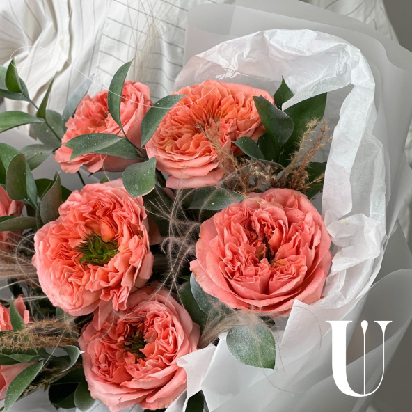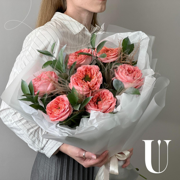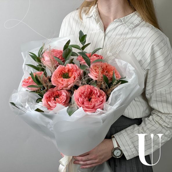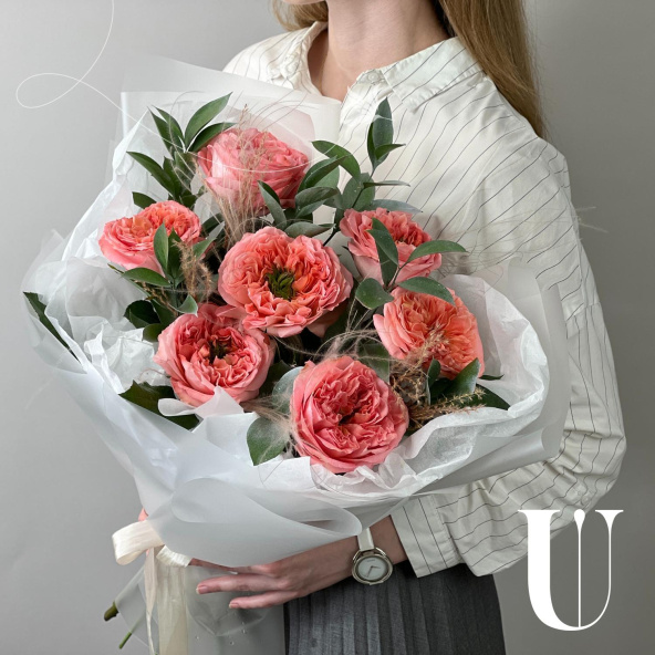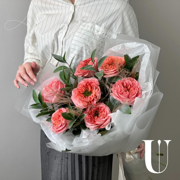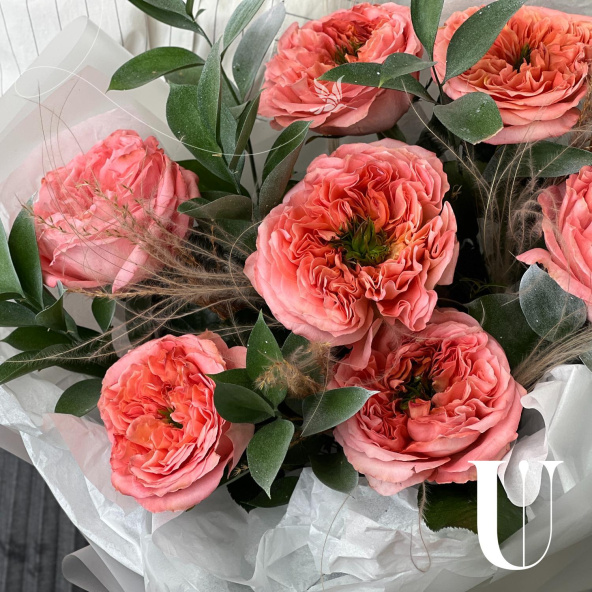 - Роза пионовидная Мандарин Экспрешн, розовая, 50 см - 7 шт