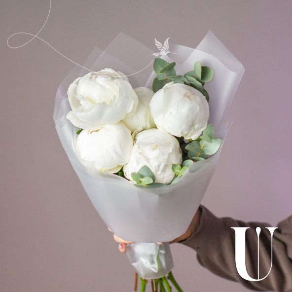 Объемный и чрезвычайно эффектный букет из 9 белых пионов