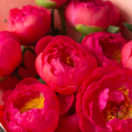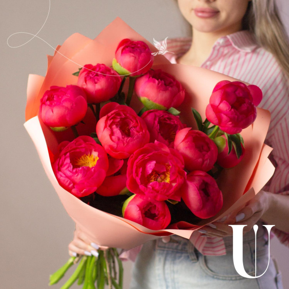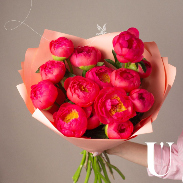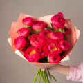 Монобукет из кустовых пионовидных роз Бомбастик в розовой упаковке