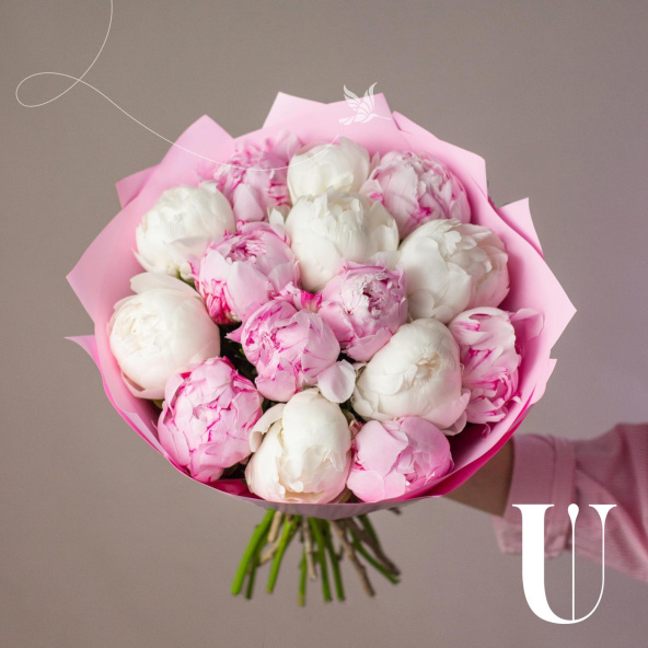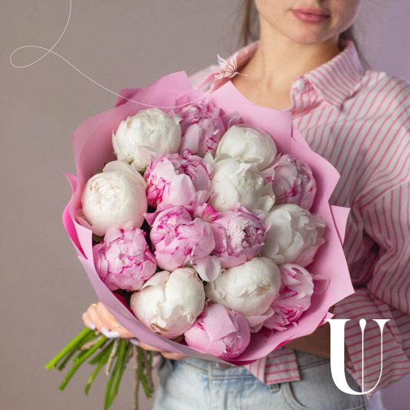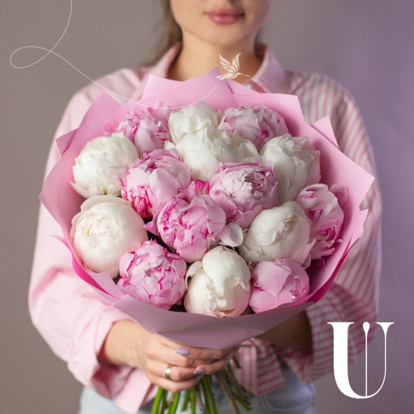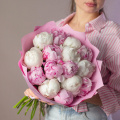 Монобукет из 15 розовых пионов сорта Сара Бернар
