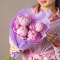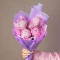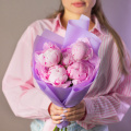 Монобукет из розовых кустовых пионовидных роз в упаковке