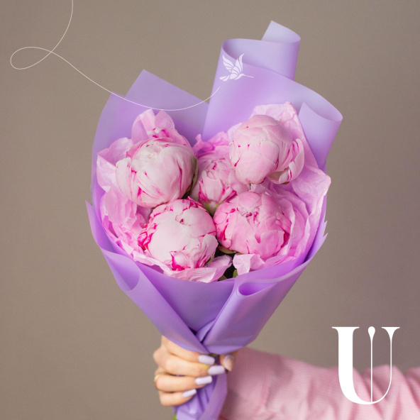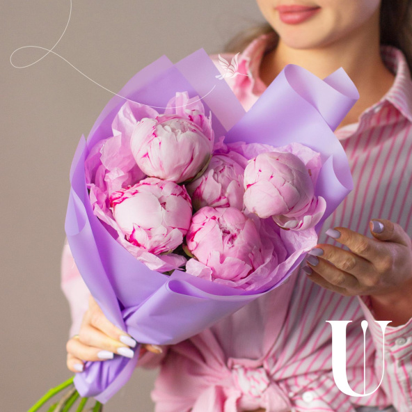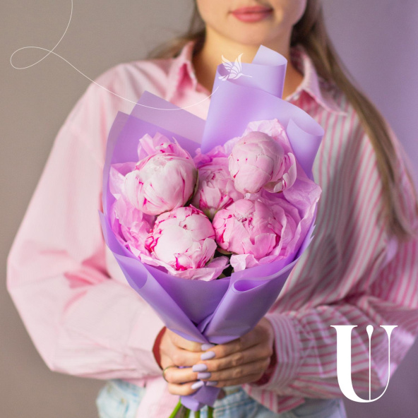 Монобукет из 9 розовых пионов сорта Сара Бернар