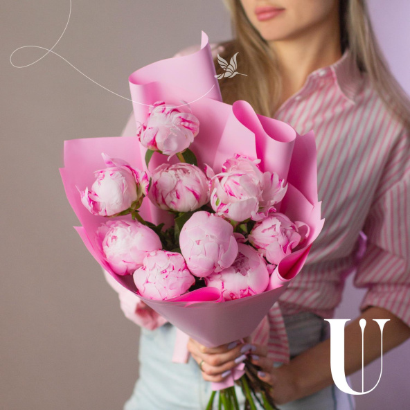 Монобукет из 11 пионов Сара Бернар в крафтовой упаковке