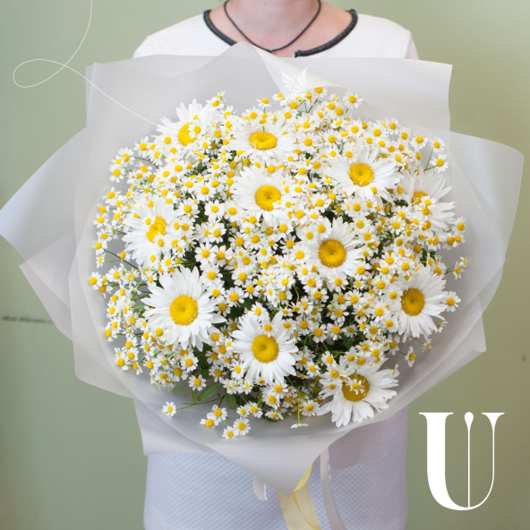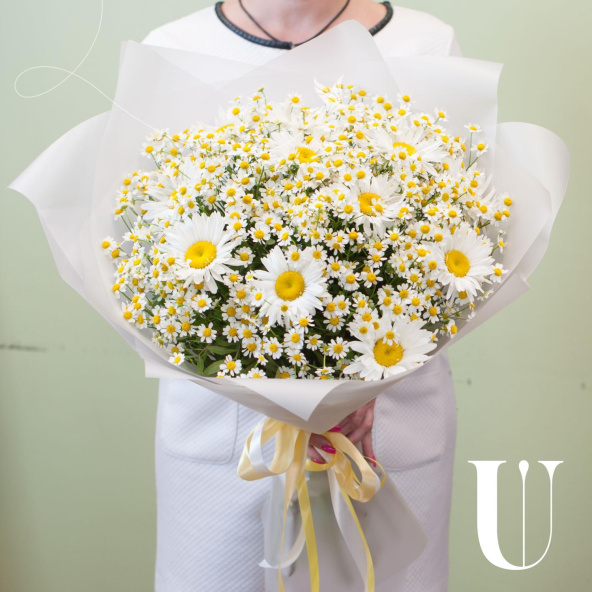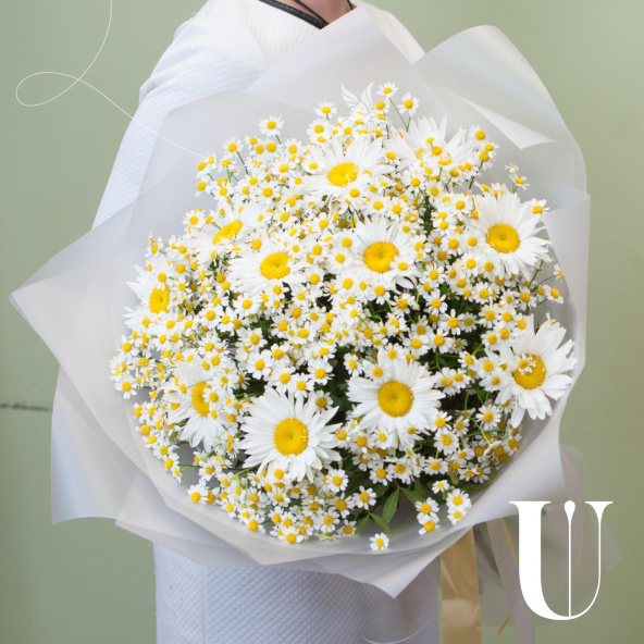 Монобукет из ромашки сорта Камилла наполненный теплом и чистотой