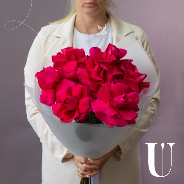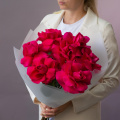 Монобукет из 15 вывернутых роз сорта Нина в матовой упаковке