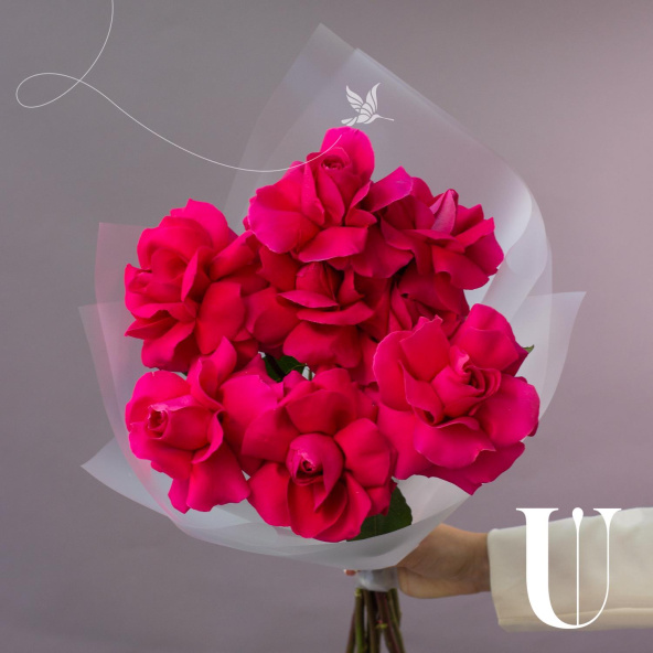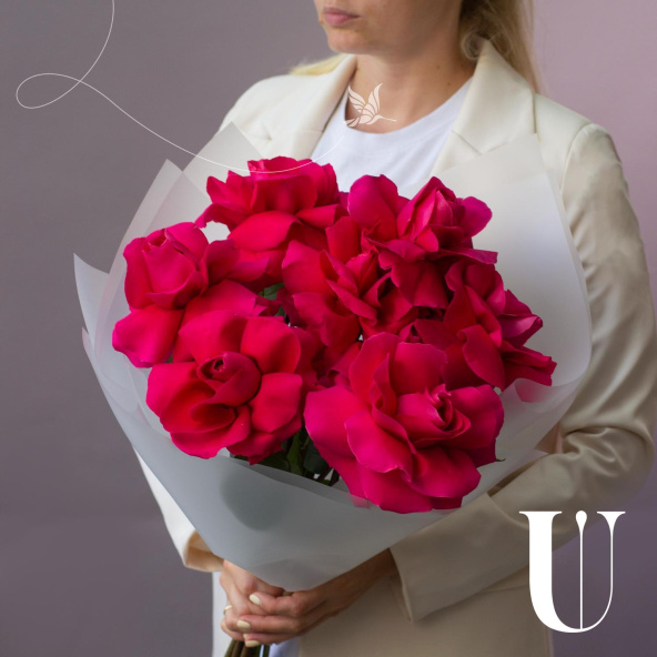 Монобукет из роз Джумилия и Талея в дизайнерской упаковке