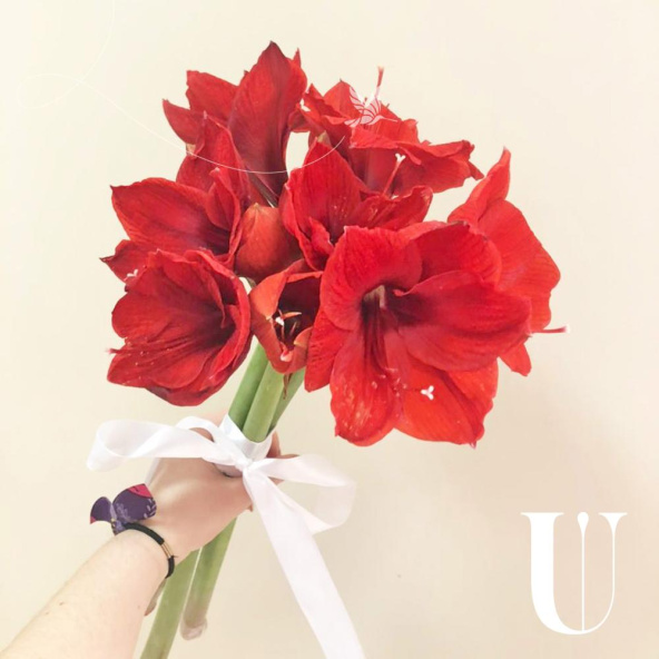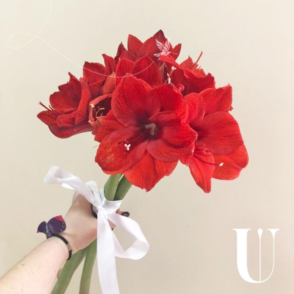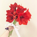Мини-букет из 25 красных роз в упаковке с атласной лентой