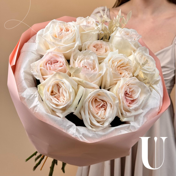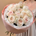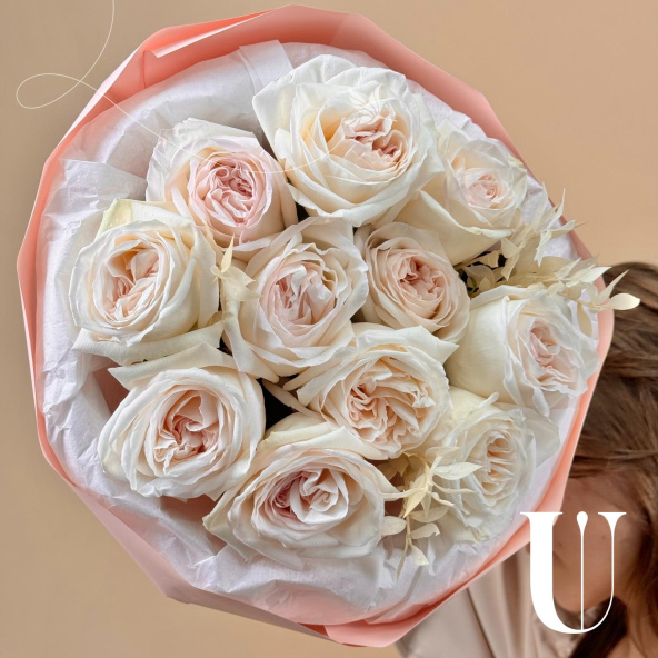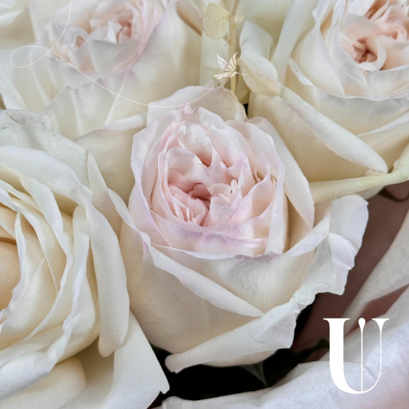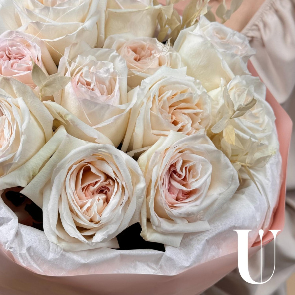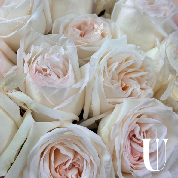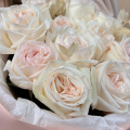 - Роза Вайт Охара, Эквадор, бело-розовая, пионовидная 50 см. - 11 шт