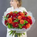 Огромный монобукет из роз сорта Эксплорер 70 см в матовой пленке