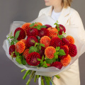 Букет из розовых пионов и фиолетовых гортензий в упаковке