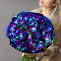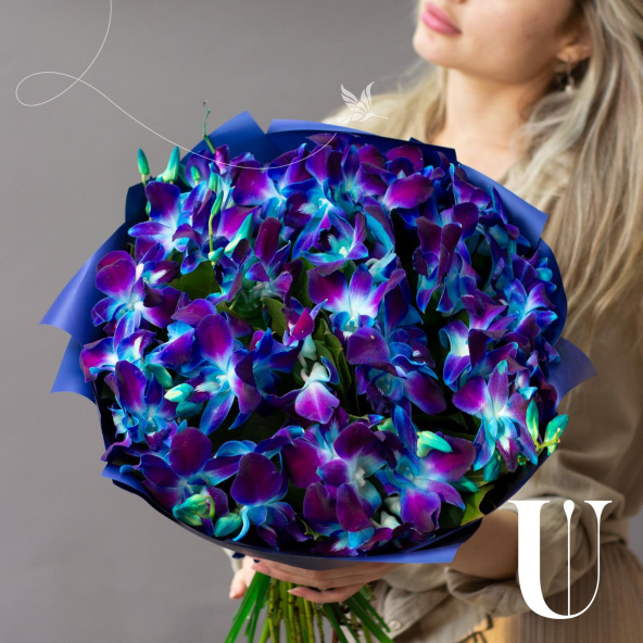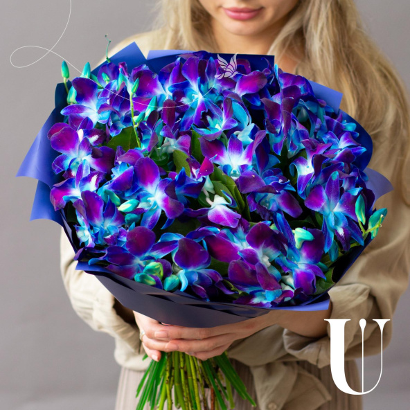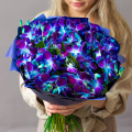Монобукет из 11 голубых гортензий в дезайнерской пленке