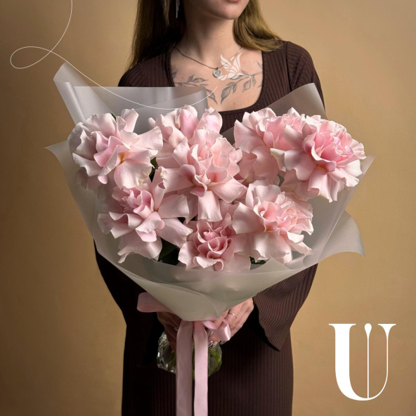 Эти розы славятся своим нежным розовым оттенком и тонким ароматом. Они придают букету неповторимый шарм и элегантность, делая его по-настоящему роскошным.