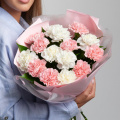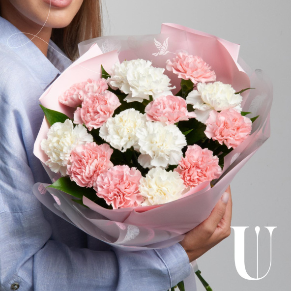 Монобукет из 15 кремовых диантусов в дизайнерской упаковке