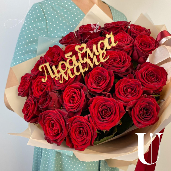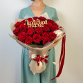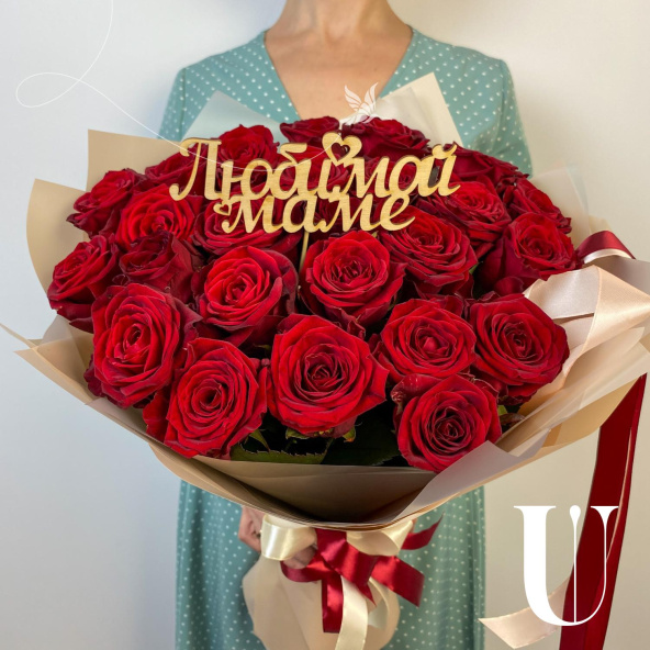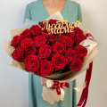 Монобукет из 25 роз сорта Ред Наоми с топпером