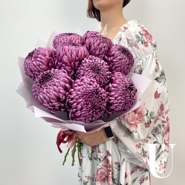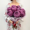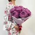 Букет из 9 сиреневых хризантем Момоко в фиолетовой упаковке