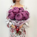Монобукет из 7 бордовых хризантем сорта Бигуди