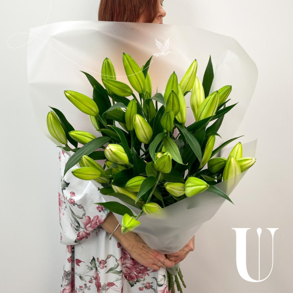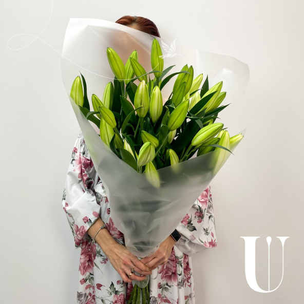Стильный букет из белых азиатских лилий