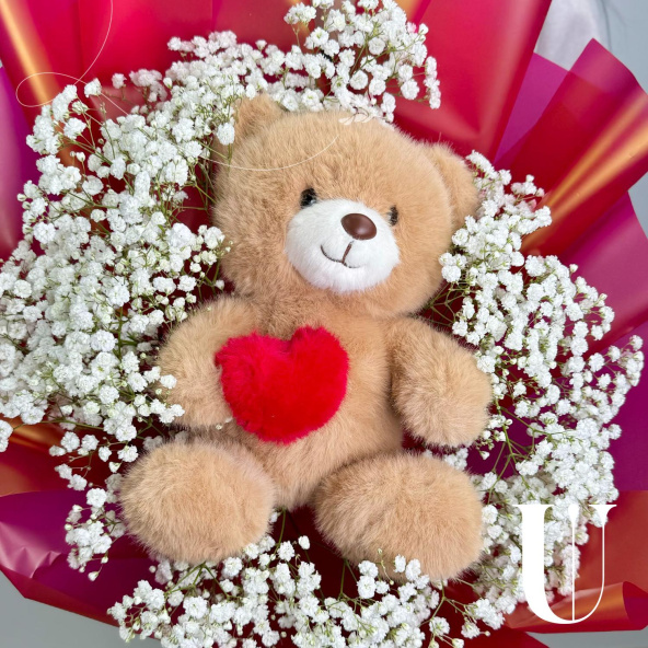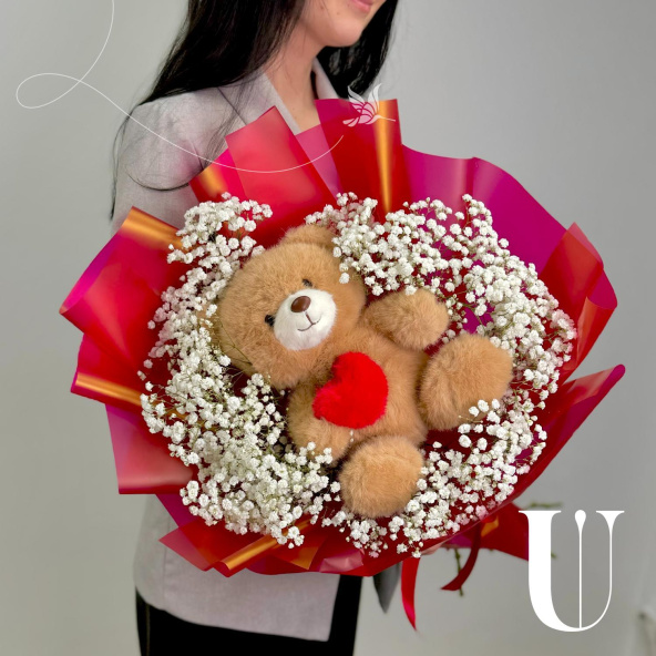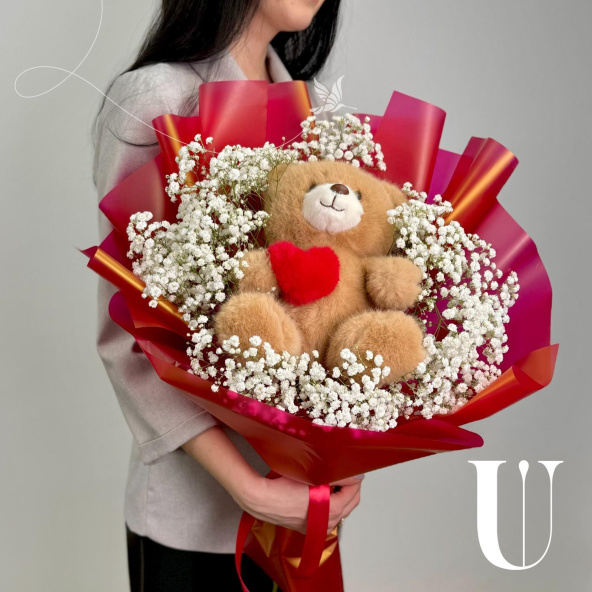 Монокопозиция из белой гипсофилы в глянцевой пленке