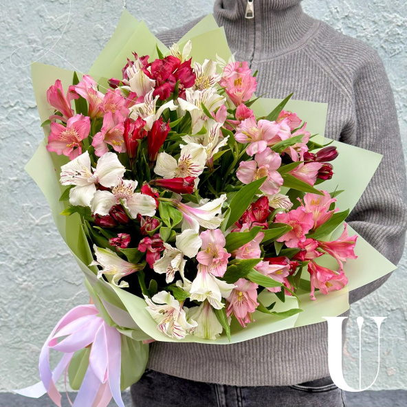 Монобукет из альстромерий микс в крафтовой упаковке