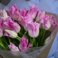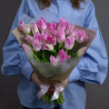 Монобукет из 25 розовых диантусов в розовой упаковке