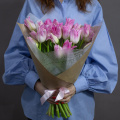 Монобукет из 19 розовых роз и салала в крафтовой упаковке
