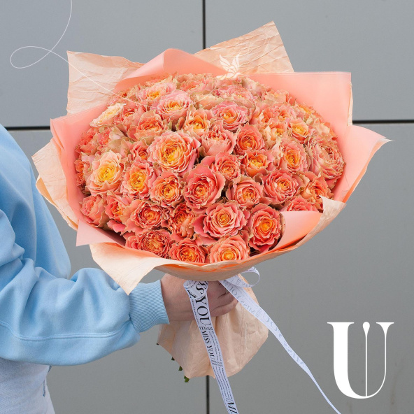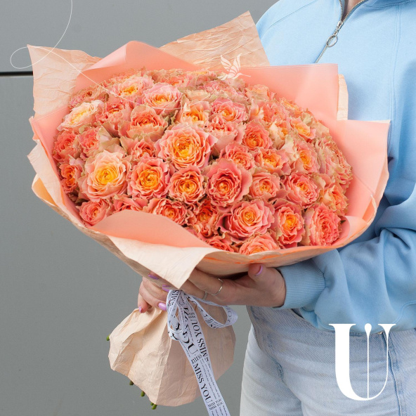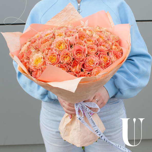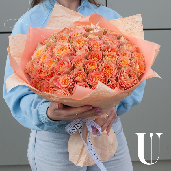 Букет состоит из 49 оранжевых пионовидных роз, которые собраны на стеблях и упакованы в крафт-бумагу. Такой монобукет будет выглядеть элегантно и изысканно, а также подчеркнет ваш вкус и внимание к деталям.