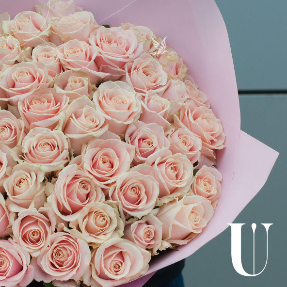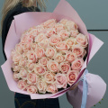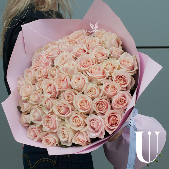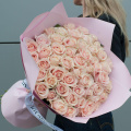 Букет цветов "Жемчужина из роз" в персиковых тонах – это изысканный монобукет, состоящий из 51 розы.