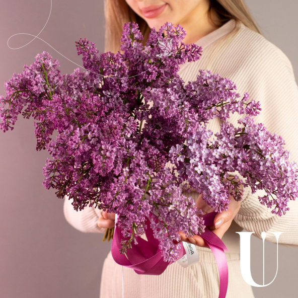 Микс из фиолетовых и кремовых диантусов в дизайнерской упаковке