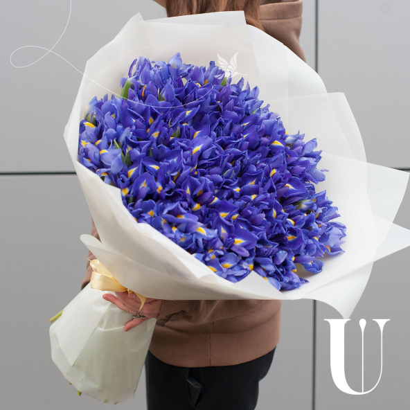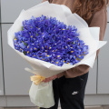 Большой букет из 151-го синего ириса в подарочной упаковке "Пленительные ирисы" - это изысканный и стильный подарок, который подойдет для любого повода.