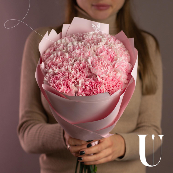 Монобукет из 16 нежных диантусов в дизайнерской упаковке