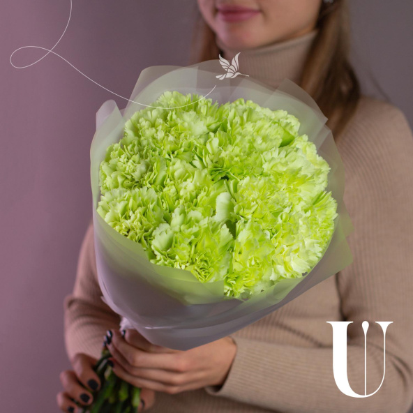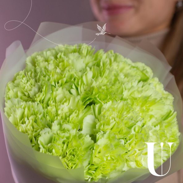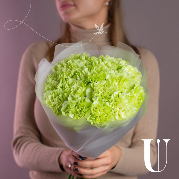 Монобукет из 15 кремовых диантусов в дизайнерской упаковке