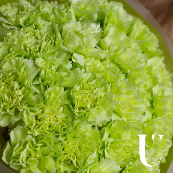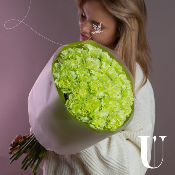 Монобукет из 25 кремовых диантусов в дизайнерской упаковке