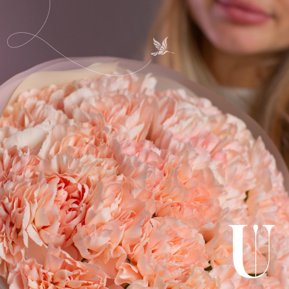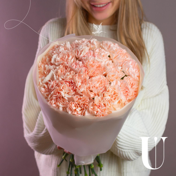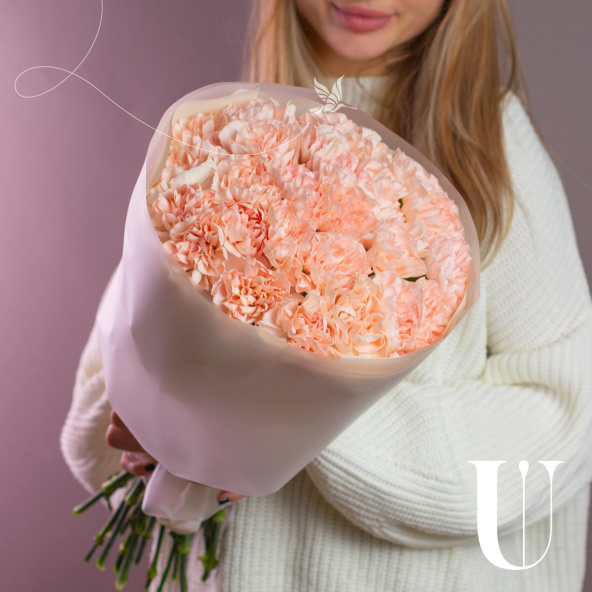 Монобукет из 25 кремовых диантусов в дизайнерской упаковке