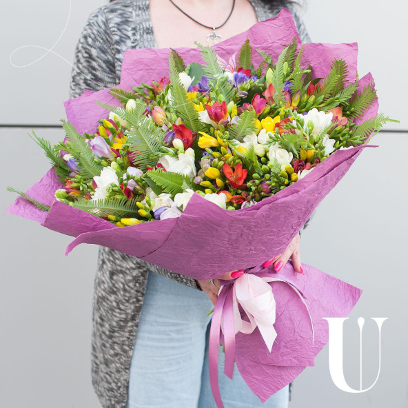 Букет из разноцветных фрезий: 101 цветок для любого повода
